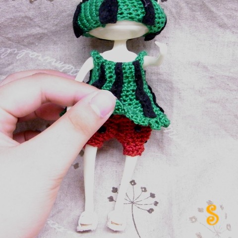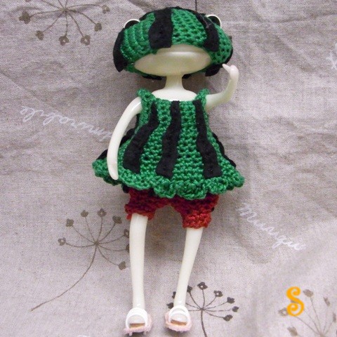 赤いドロワーズは、スイカの中身を表現してみました。