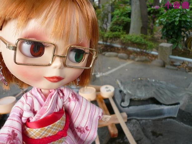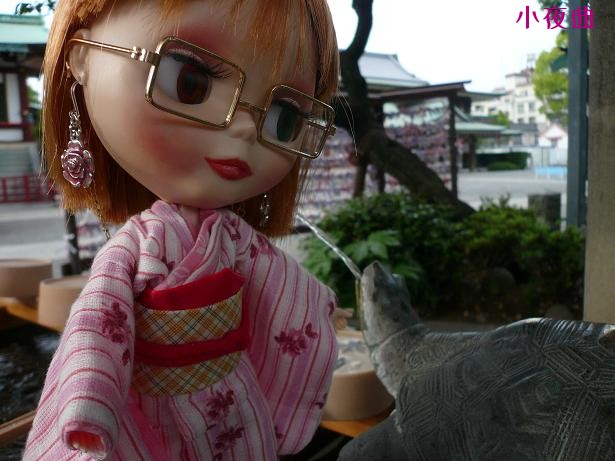 小夜子のとなりにいるのは手水のカメです。