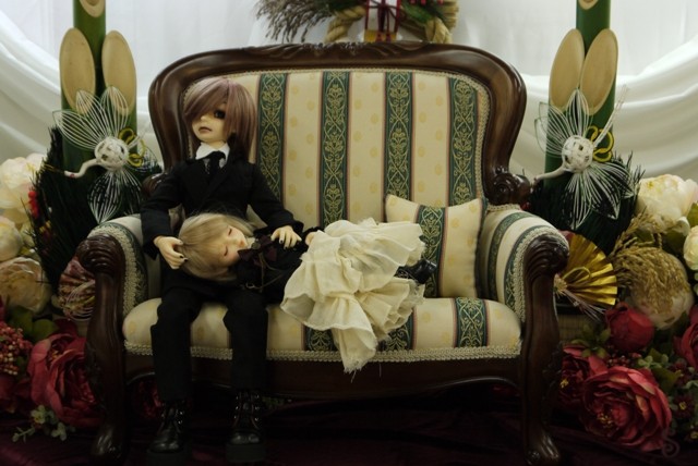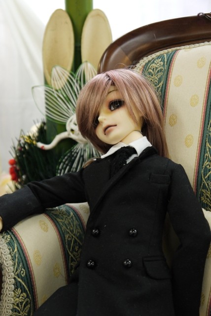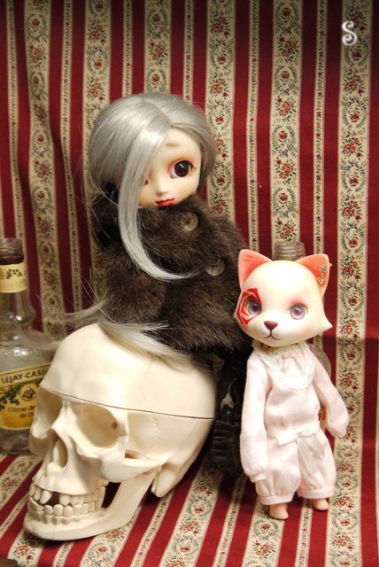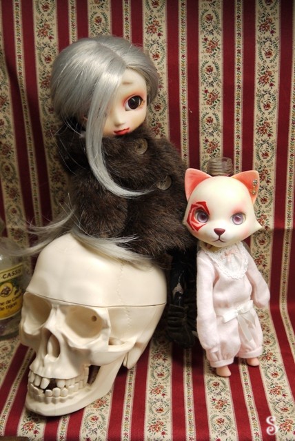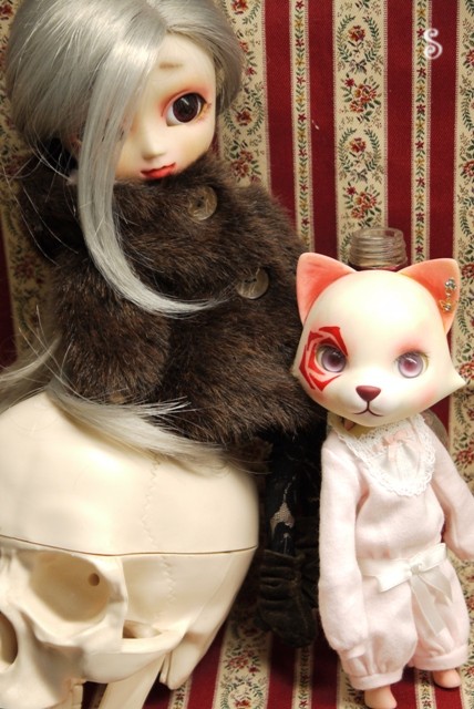 今はこんな感じで、ドール飾ってる机の真ん中におります。